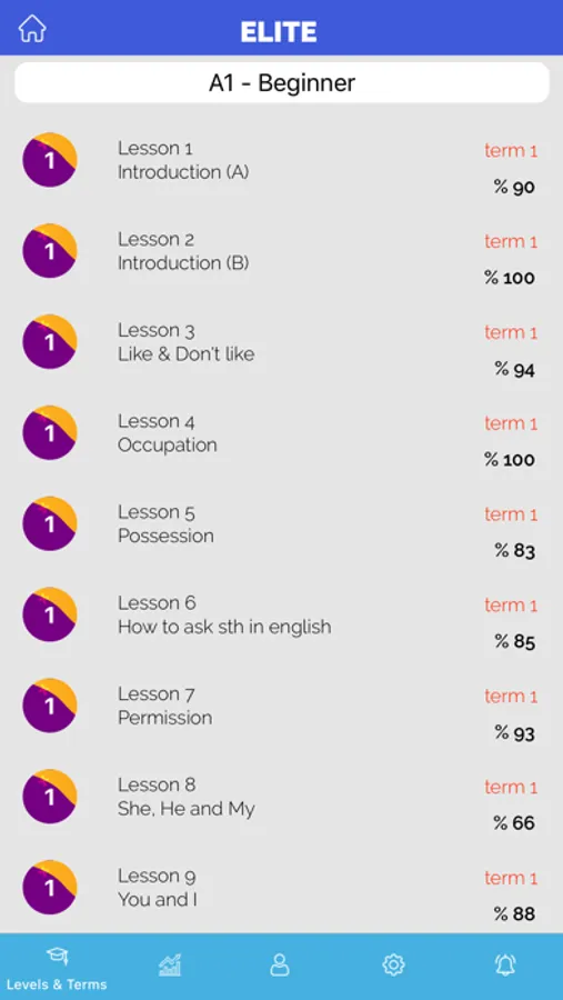 Elite is an English learning app. It helps you to master new words, phrases, and grammar with