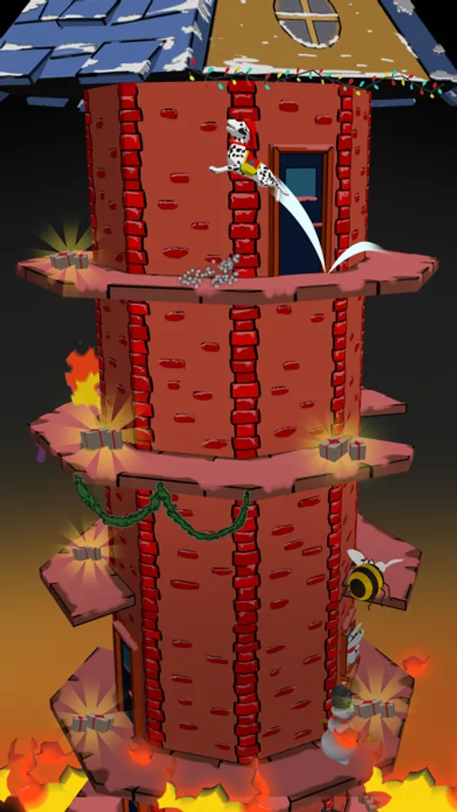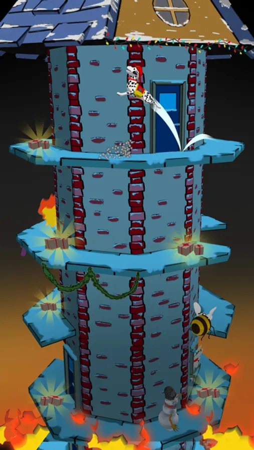 Run, jump, and leap your way across the beautiful snow-covered building! Guide Nero to jump over mischievous snowmen, dastardly gingerbread men, burning fires, and challenging obstacles you’ll need to dodge. Dash forward as fast as you can, collect doggie treats, and make your way down the tower!