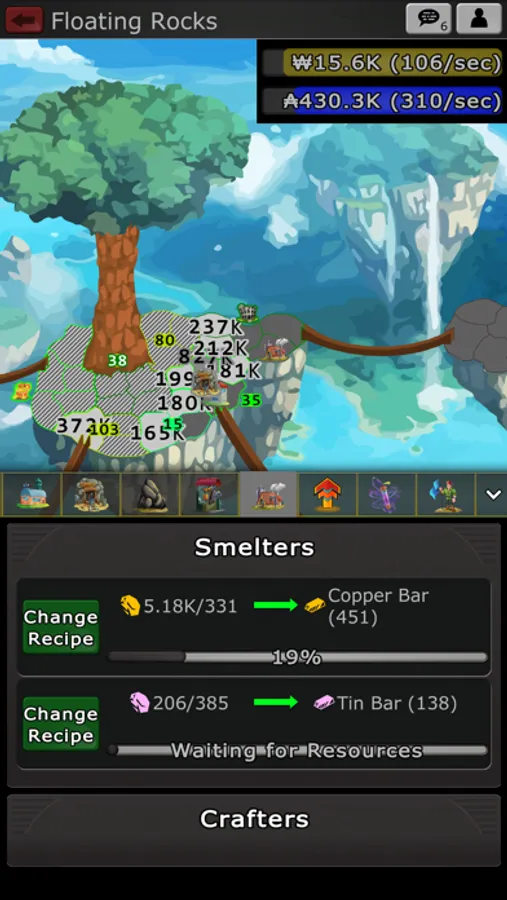 • Crafters work continuously to turn your smelted bars into items, such as copper bars into copper wire.