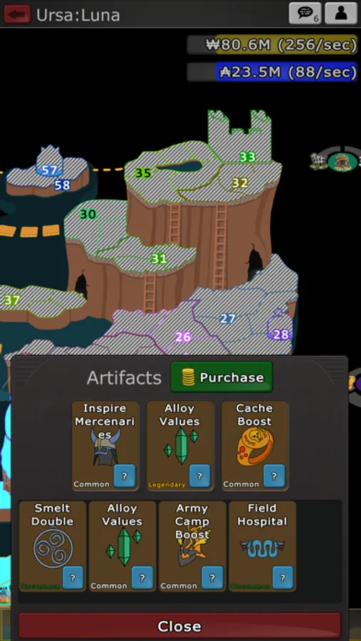 • Find a dig site and start digging for artifacts, which are permanent upgrades to fuel your empire. Artifacts can be upgraded by sacrificing ones you don't need.