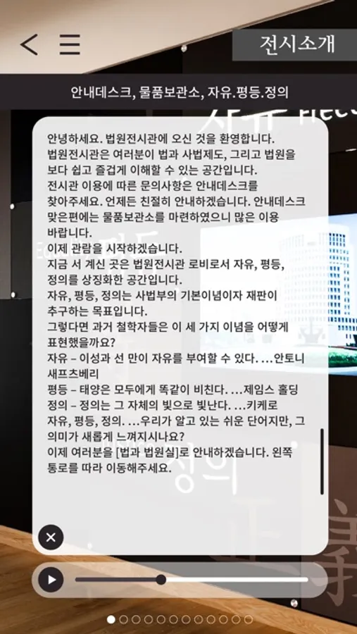 법원전시관은 여러분이 법과 사법제도, 그리고 법원을 보다 쉽고 즐겁게 이해하고 체험할 수 있는 공간입니다.