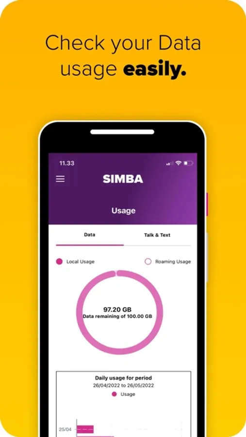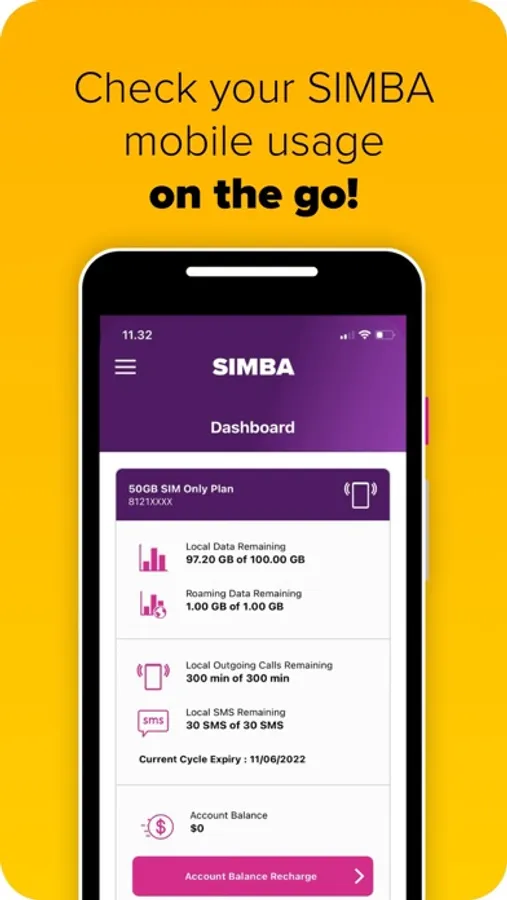 My SIMBA is a one-stop-shop to help you manage your SIMBA account and services on the go! Our brand-new app is easy to use, giving you quick control of your SIMBA products through our sleek interface.