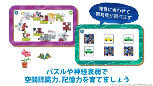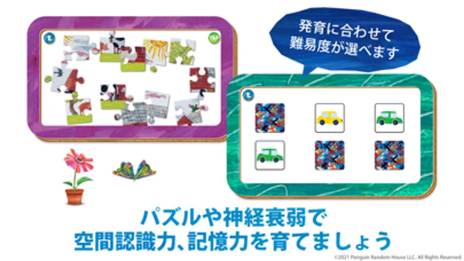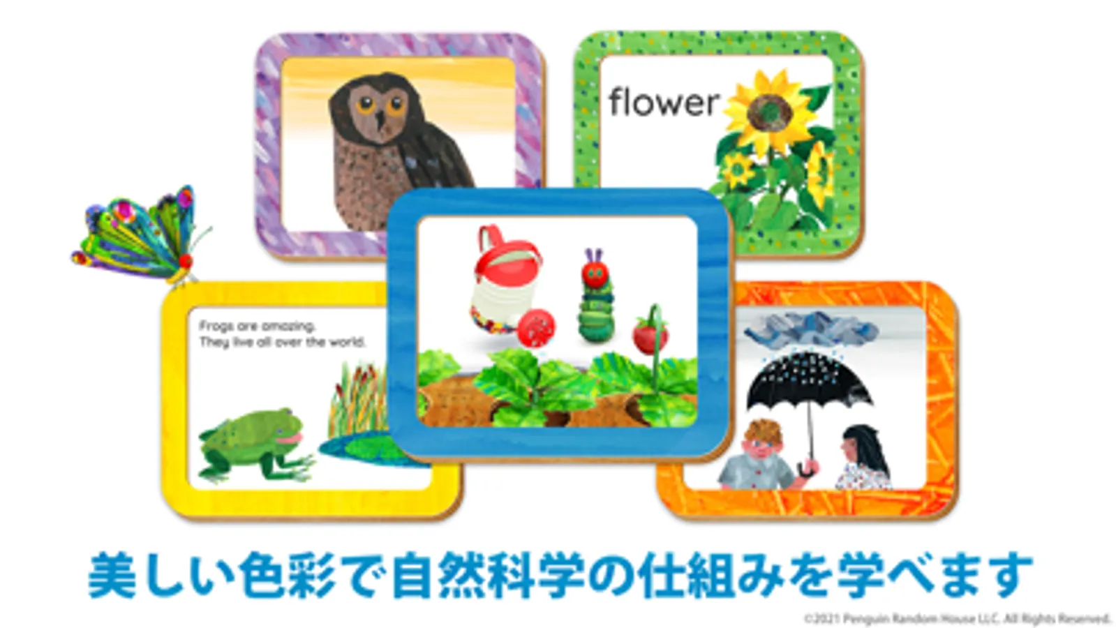 エリック・カールの美しい色彩の中で、自然科学について学べます。また、美しい庭で植物を育てるゲームでは、自然を愛する心を育みます。