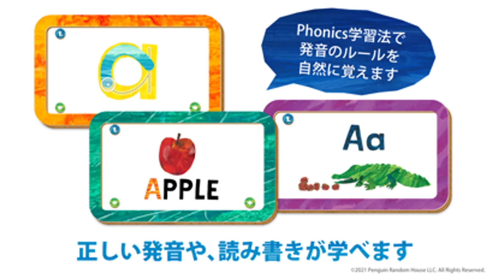 たくさんの歌や絵本、ゲームで楽しく読み書きが学べます。また、正しい発音のルールが学べるPhonics学習法を採用しています。