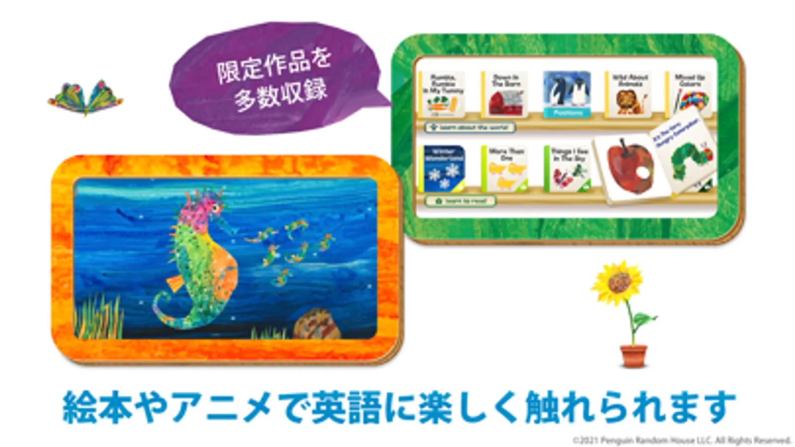 ・はらぺこあおむしのアクティビティやアニメ、歌や絵本を通じて楽しく英語に触れられるアプリです