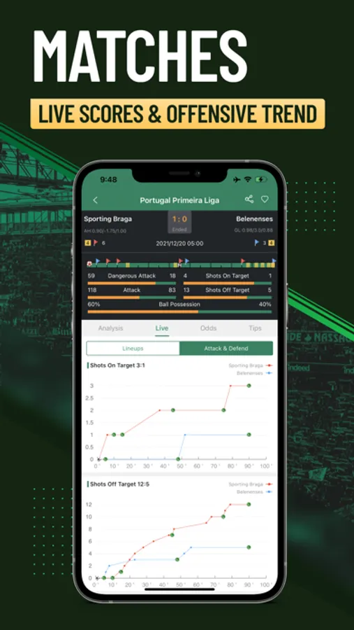 • Live Scores: Visual football match live broadcast, goals, red and yellow cards reminders. Half/Full game scores and corners.