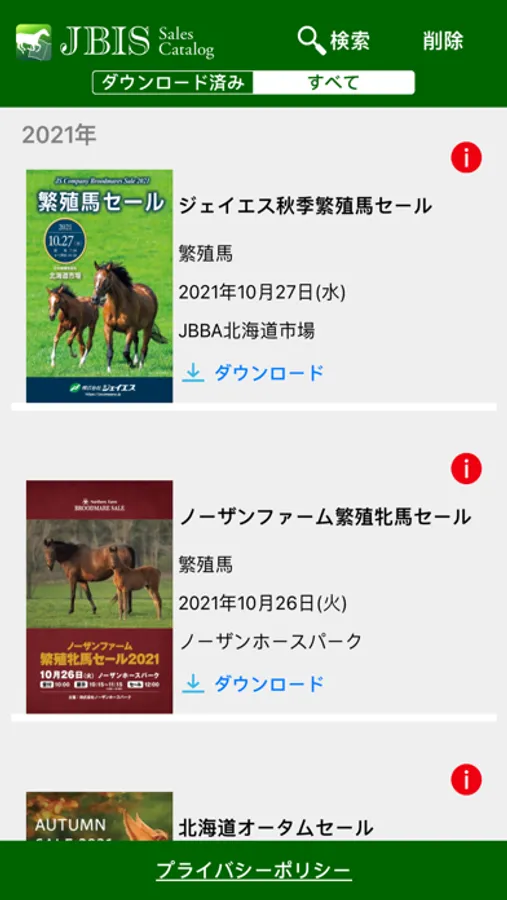 必要なせり名簿を選んで、無料でダウンロードできます。一度ダウンロードすれば、圏外でも見ることができます。
