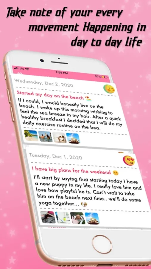 - Write your moments, events through your daily private diary, personal journal, your travel journey and many more