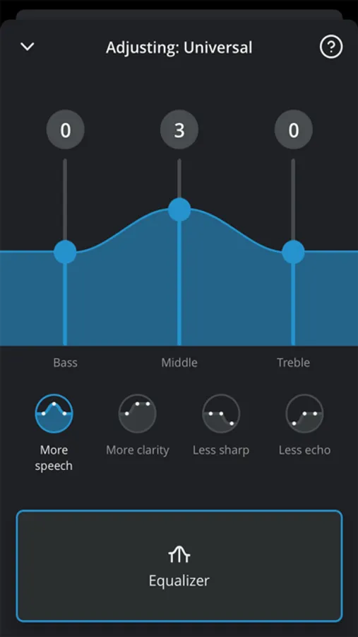 - Adjust the pitch of the sound (bass, middle and treble) using the equalizer