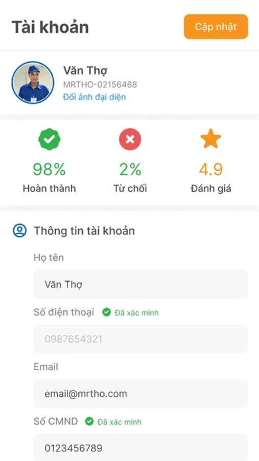 Mr. Thợ là ứng dụng đặt dịch vụ sửa chữa và lắp đặt ngay trên website hoặc ứng dụng điện thoại. Mr. Thợ cho phép bạn gọi thợ đến nhà một cách nhanh chóng và tiện lợi với đa dạng dịch vụ: thợ điện dân dụng, thợ nước, thợ điện lạnh, lắp đặt nội thất, .. Thanh toán tiện lợi với nhiều hình thức thanh toán.