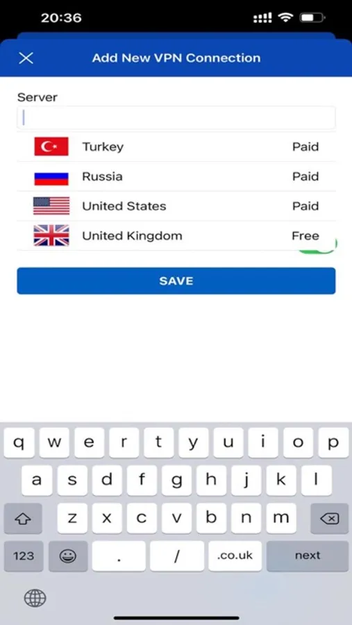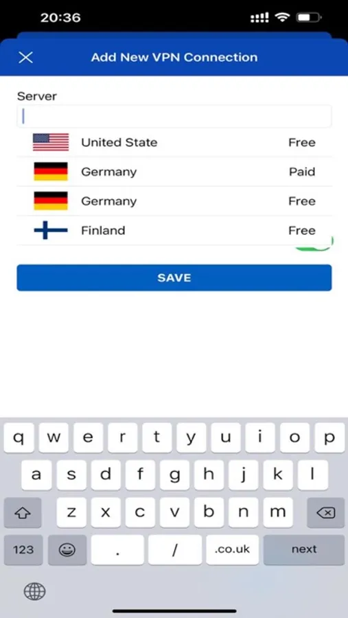 We also added few free servers to use with the app no subscription or information require just click on add vpn connection and click on the server suction it will apear all servers we provide choos what you want to use and add.