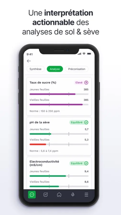 - Vous suivez les analyses de vos parcelles (analyses de sol, analyses de sève).