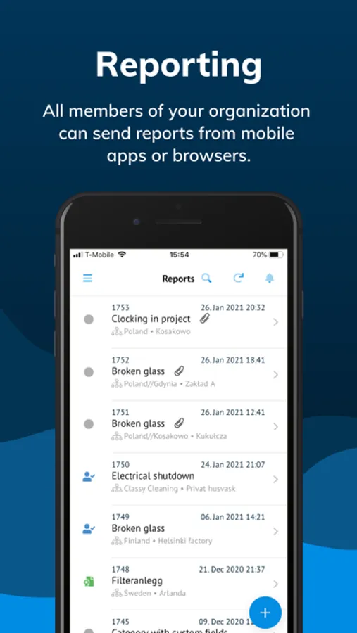 This Pro version of Unified Analytics has handling capabilities for reports and issues. It also has a checklist module with reasons analysis.
