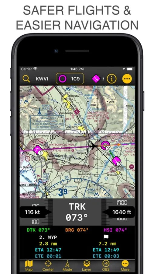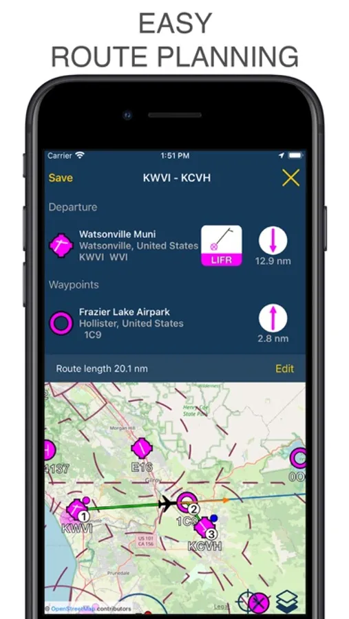 Create and save your routes quickly and efficiently with 50000+ airports, navaids, and waypoints.