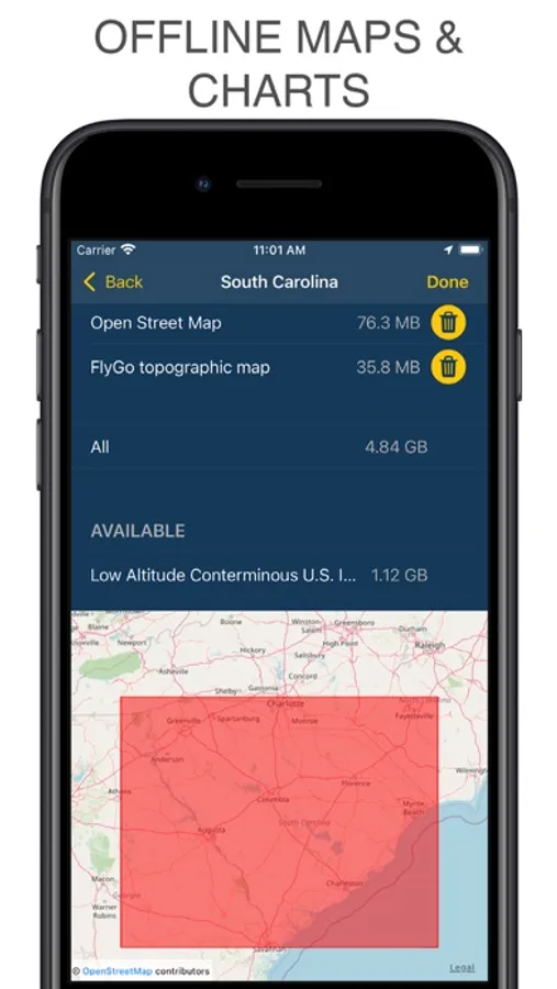 * FlyGo Air Navigation has two subscriptions, BASIC, and PRO. Unlimited region downloads, terrain awareness system, charts, and the 1-month trial are only available in the PRO version. The BASIC version has a 2-week trial period.