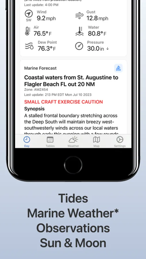 TidesPro Premium caches tide data for any locations you've marked as Favorites or loaded recently, so you can access essential tide information even when you venture off the grid. (Weather not available offline.)