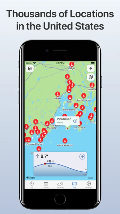 Visualize tides like never before with our intuitive and interactive tide maps, and change the overlays to view nautical charts, radar, clouds & storms, & more. (*Overlays require Premium)