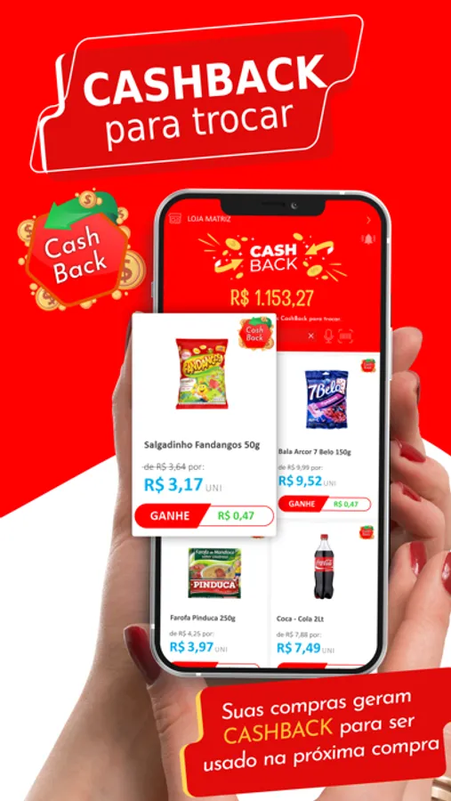Compre e identifique-se no caixa, em suas compras pode receber CashBack de volta e no APP conferir seu SALDO. Use para pagamento nas suas próximas compras no supermercado. Funcionalidade sujeita a estar com a campanha vigente.