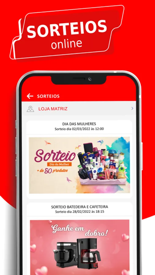 Descobrimos que nossos clientes adoram sorteios. Então por aqui você pode participar de muitas campanhas e concorrer a super prêmios. Avisaremos sempre que um novo sorteio estiver no AR.
