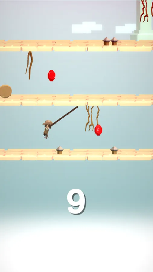 Tap to jump, tap again to use your whip and swing further. Find the hidden treasures!