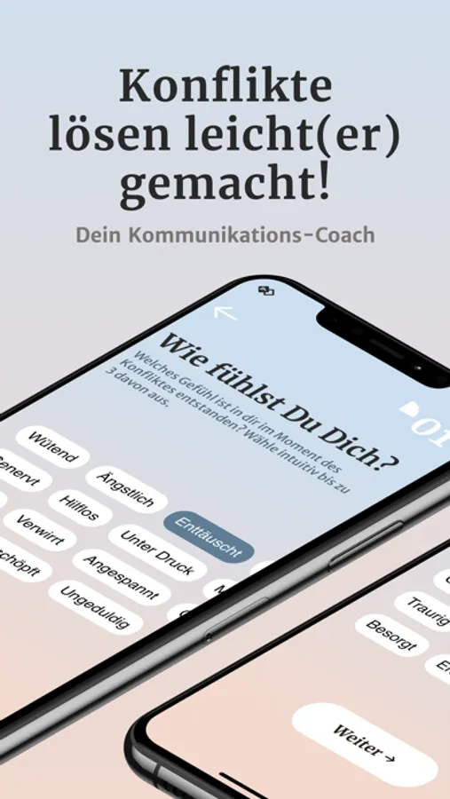 Die Methodik basiert auf bewährten Konzepten der Kommunikation und Mediation. Diese werden in Trainings für Führungskräfte, Mediationsausbildungen und Psychologieseminaren geschult und stehen dir nun in dieser kompakten App zur Verfügung.
