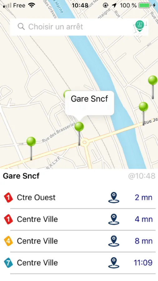 - BusInfo vous permet de trouver un arrêt à proximité du lieu où vous vous trouvez. L’application vous localise à l’aide du GPS de votre téléphone mais vous pouvez aussi choisir directement un arrêt dans la liste.