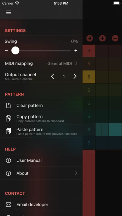 nb: polybeat does not make sound by itself, you will need to load it in an AUv3-compatible host (such as AUM, Audiobus, ApeMatrix, Nanostudio 2, etc.) or connect it to an external drum machine, synthesizer, computer or any other sound generating device.