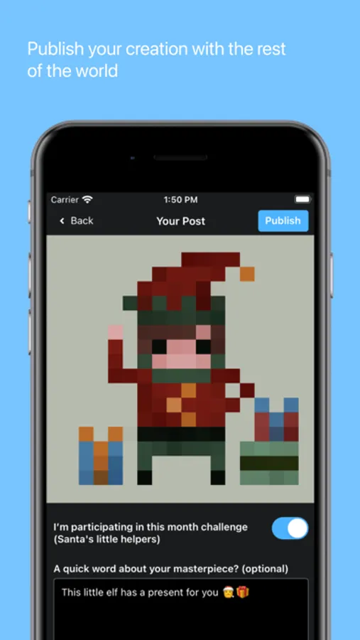 Pix is an online pixel art community where everyone can unleash their creativity on a 16x16 canvas.