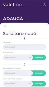Iti creezi un utilizator, adaugi datele masinii si adresa de preluare/predare, lansezi o solicitare/ programare, alegi un valet, predai masina cu un pv electronic si apoi masina este in responsabilitatea Valetului.