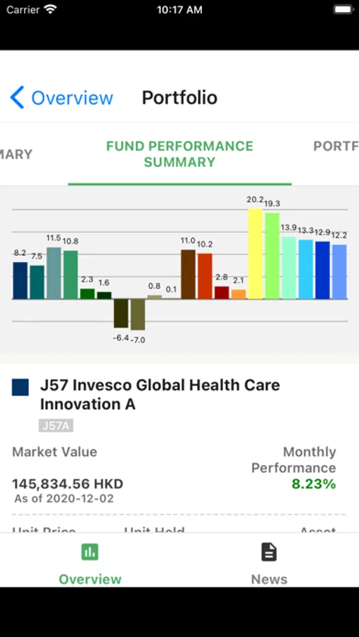 Smart navigation Instant summary of the valuation and performance of your investment portfolios that sit within a unit