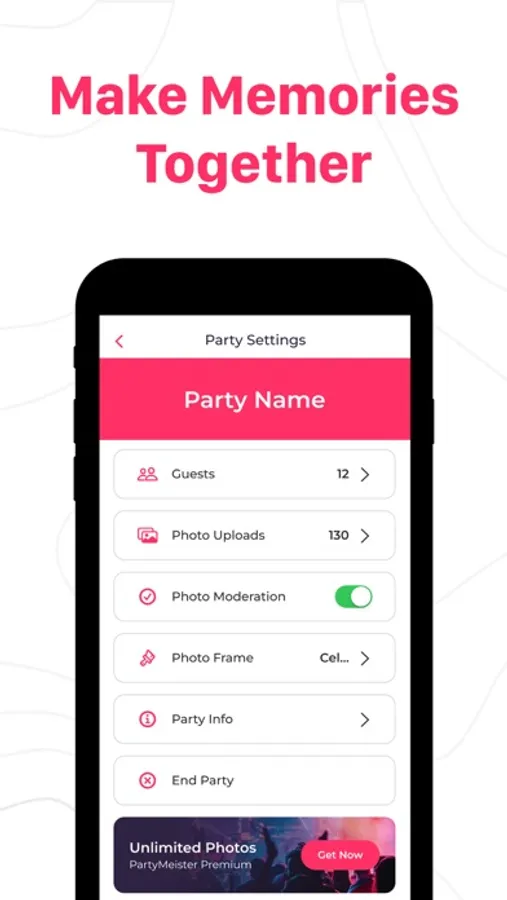 ■ GET EVERYONE'S PHOTOS | On average, 2000 photos are taken by wedding guests. Newlywed couples never get to see these. Since PartyMeister automatically shares all captured images with you, you will NEVER be bothered by this issue.