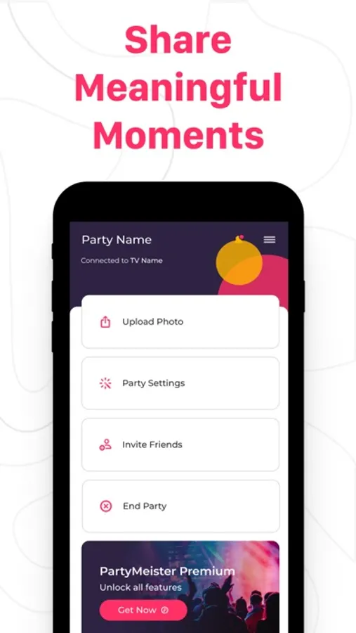 ■ SHOW LIVE SLIDESHOWS ON TV | Display your event’s photos on a smart TV screen as a live slideshow with PartyMeister's app.