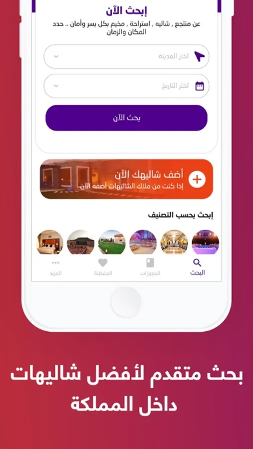 ابحث، شاهد، احجز ، ثلاث خطوات بسيطة وبأمان وبجودة تعكس الواقع، تطبيق ( شيك إن ) يتفهم احتياجاتك ويلبي رغباتك.