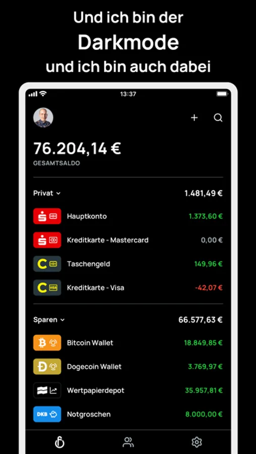 Verbinde deine Bankkonten, Aktiendepots, Kryptowährungen und viele weitere Anbieter ganz einfach mit wenigen Schritten. Erhalte jederzeit und überall einen vollständigen Überblick über deine gesamten Finanzen. Unser Ziel ist es, dass du alle Vermögenswerte vollautomatisch aufgelistet bekommst. Daher versuchen wir neben etablierten Instituten auch neue und exotische Dienstleister und Anlagen zu unterstützen, um die größte Auswahl anzubieten.