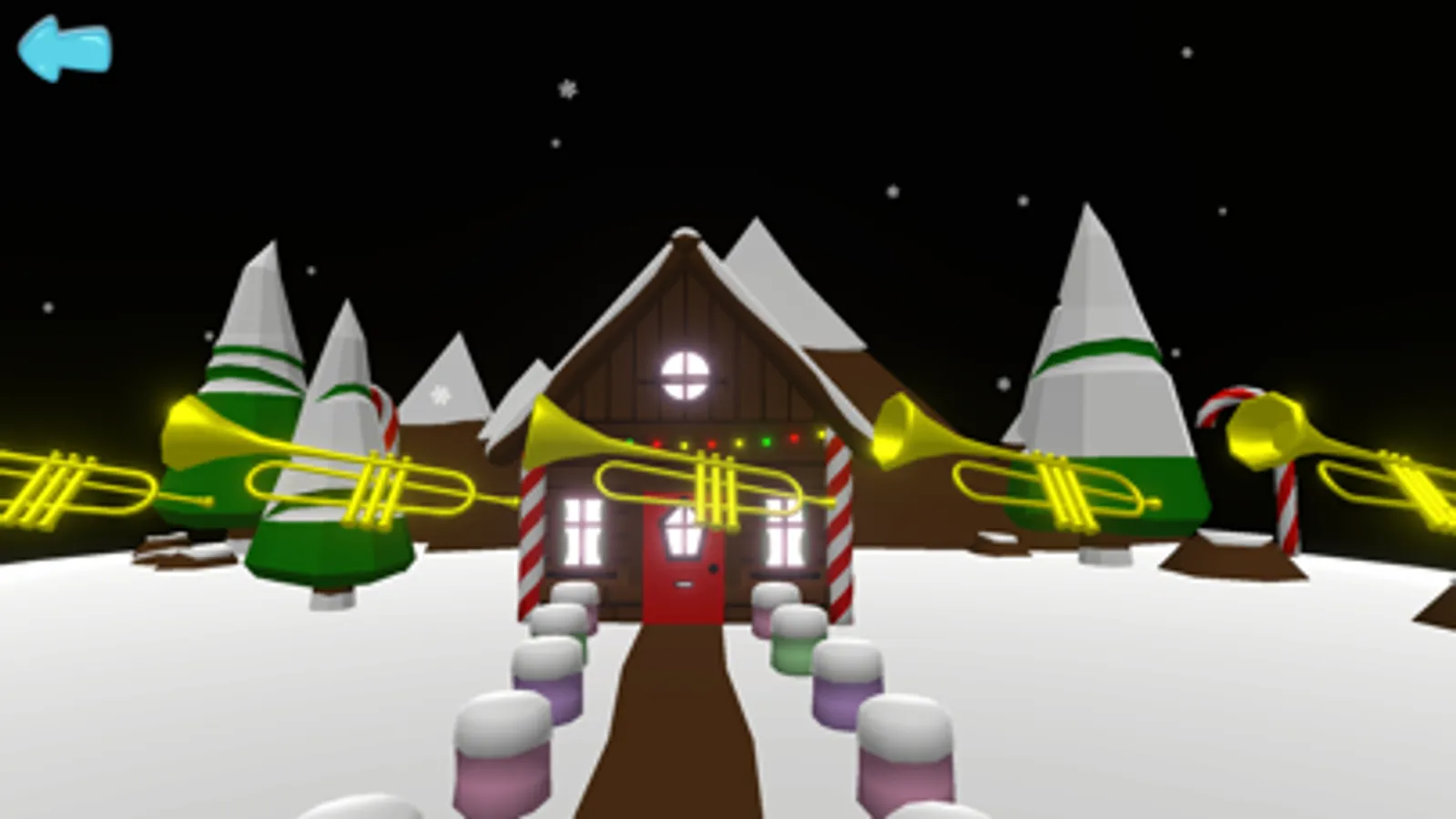 Game 1 - play the first eight notes of Hark The Herald Angels Sing. This unlocks a short animated video about Angel Gabriel.