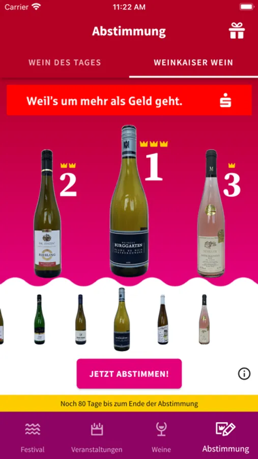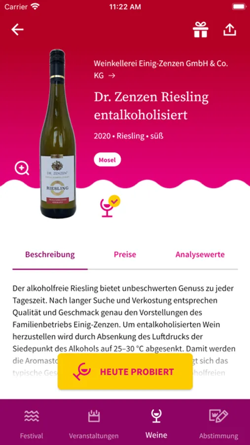 Die App stellt tagesaktuell Informationen und Termine der Veranstaltungsformate im Rahmen des Weinfestivals zur Verfügung. Interessierte und Besucher*innen finden hier Informationen zu den 10 ausgewählten Festivalweinen, den teilnehmenden Winzer*innen und den vertretenen Anbaugebieten. Auf zahlreichen Veranstaltungen während des Festivals können die Weine verkostet werden. Nutzer*innen der App haben dann die Möglichkeit, ihren persönlichen Wein des Tages zu bestimmen*. Hierbei gibt es täglich Gutscheine für das nächste Glas Wein an der Koblenz-Touristik-Vinothek zu gewinnen*. Zum Ende des Festivals wird dann, ebenfalls per App, der Gesamtsieger auserkoren. Dieser wird auf der Abschlussveranstaltung am 06.Juli zum WeinKaiserWein gekürt.