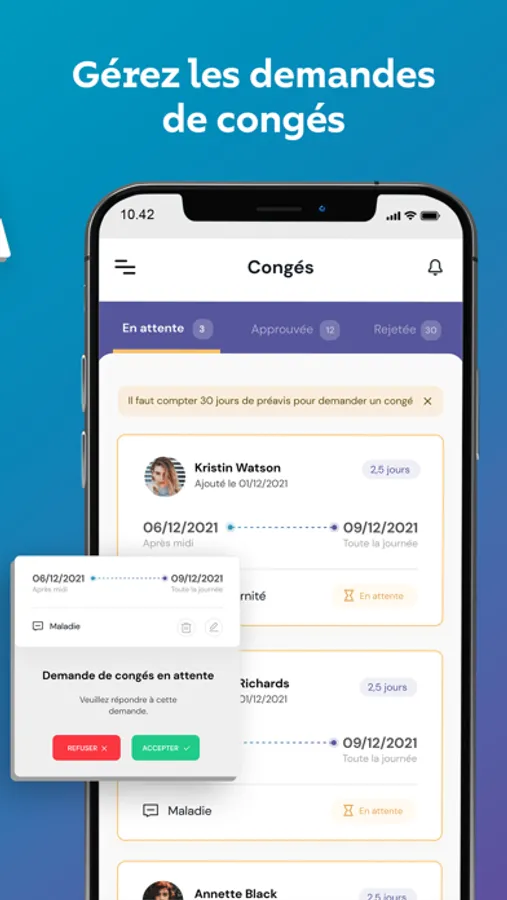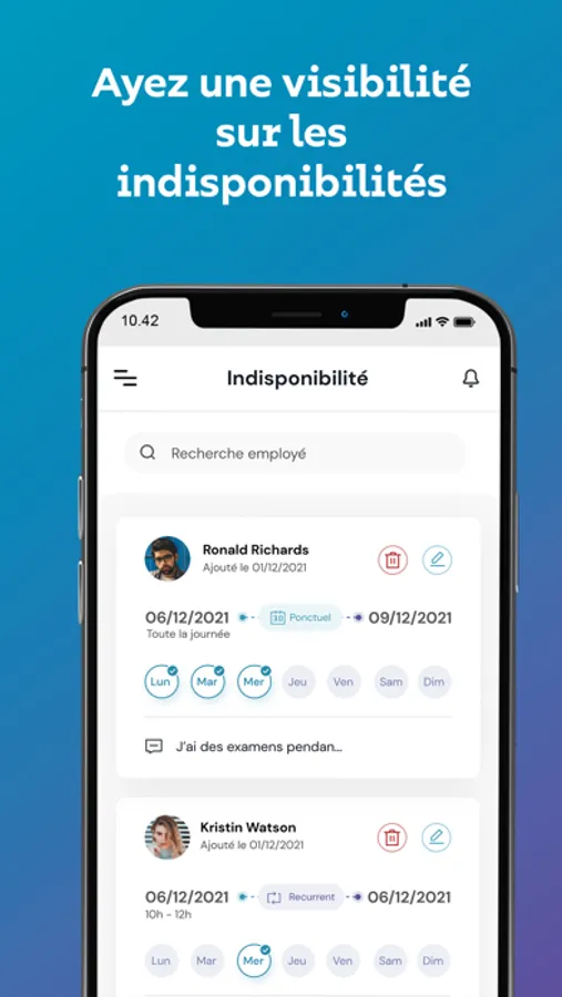 - Signaler vos indisponibilités en un clin d’œil (Important pour que votre manager organise au mieux le planning).