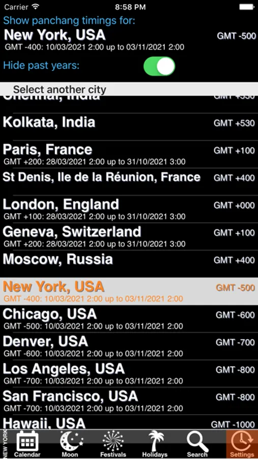 - A list of major cities for which you want to see the detailed panchang. If your city is not in the list, you just select the closest one.