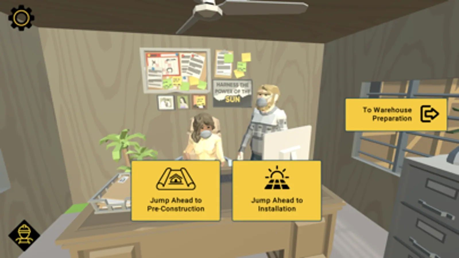 Gameplay will lead you through warehouse preparation, pre-construction, installation, and post-construction tasks. You also have the ability to skip to the task you are most interested in learning about.