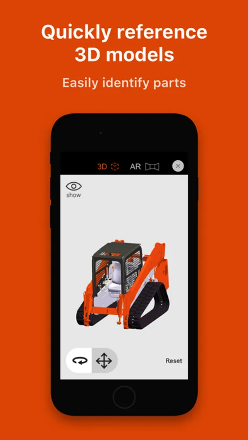 "Diagnose track loader issues for Kubota vehicles. Simple step-by-step instructions help you diagnose faults quickly and easily. Built-in 3D models and Augmented Reality camera make it easy to identify parts, saving you time.