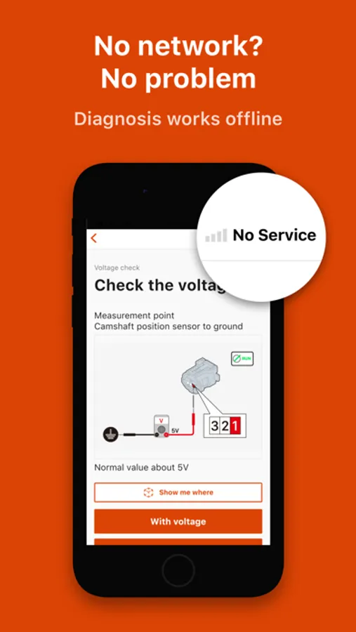 The app works without a network, so you can perform diagnostics even when you're out of network range.