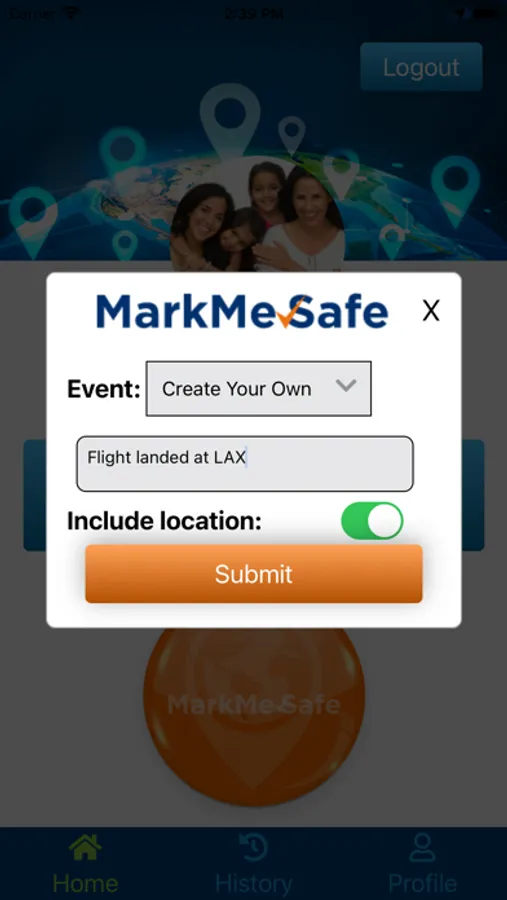 MarkMe Safe (MMS) is a one-touch application to notify family that you have arrived at your destination and that you are safe.