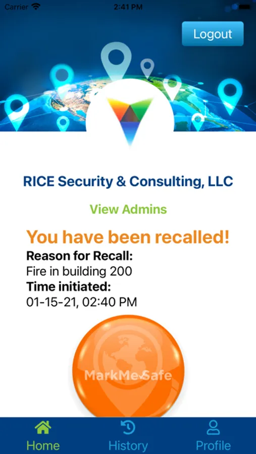 MarkMe Safe is a simplified approach designed for business operations and accountability. MarkMe Safe gives the Human Resource managers the capability to create, publish, and send an event for the workforce to tap the large orange button.