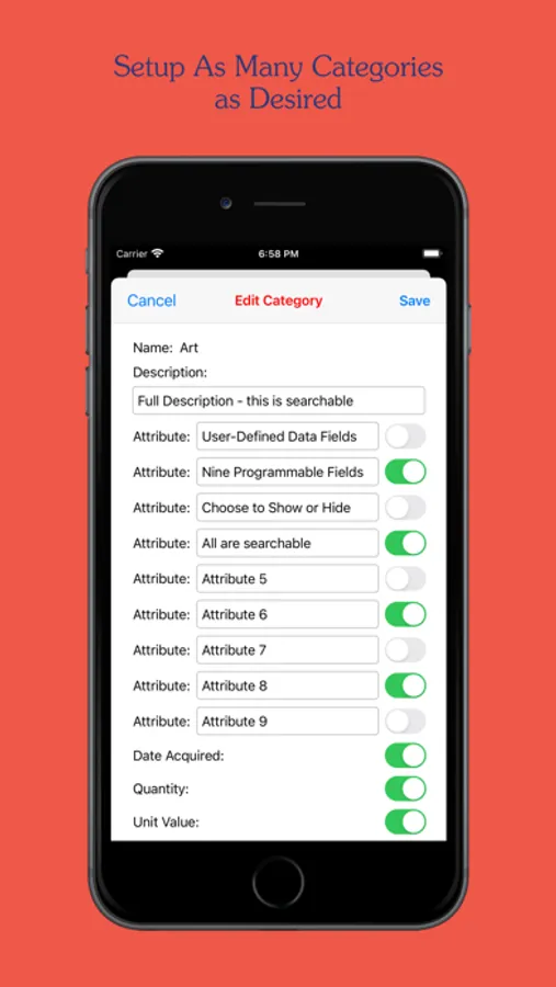 Manage lists of items. Fully customizable categories. Inventory management. Local database storage and full iCloud synchronization.