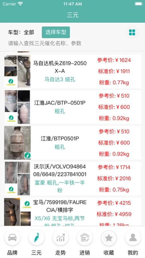 三元催化回收报价系统,实时更新三元催化回收价格表,与国际价格金拓网实时同步金属价格,每一个三元催化器回收价格都是实时计算出来动态价格,随时掌握实时价格,无论是回收三元催化,还是卖出三元催化,都能知道利润空间。用户可以收藏三元催化,可以创建自己的三元催化数据库,定制自己的三元催化价格体系,价格自由配置。