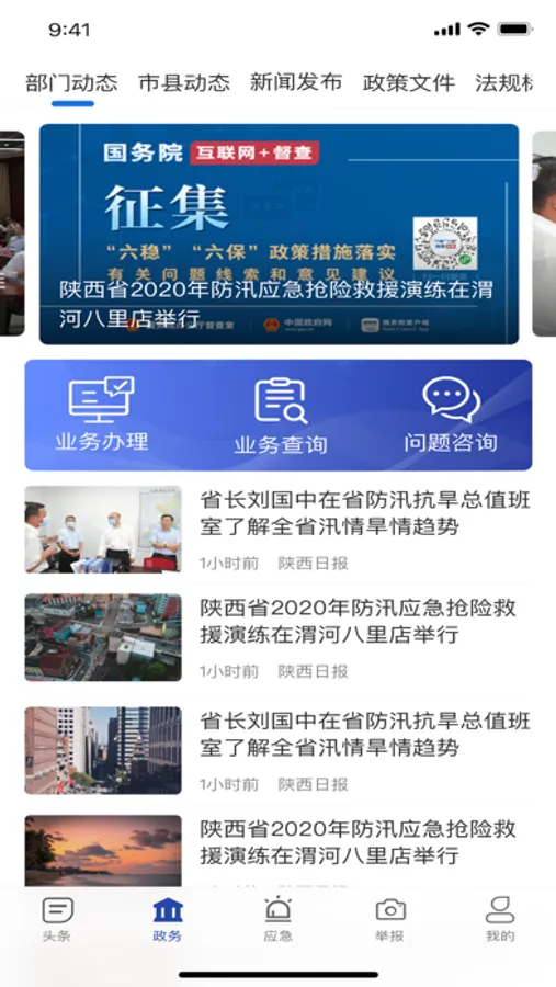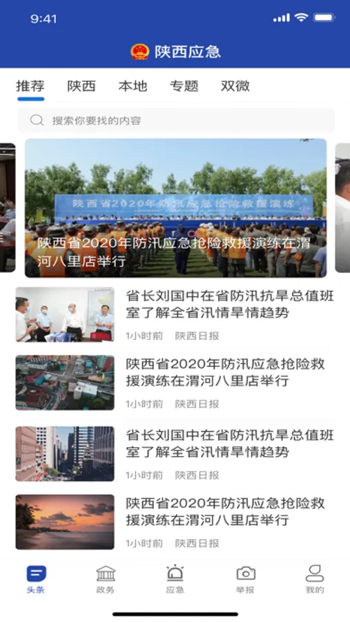 《陕西应急》APP是陕西省应急管理厅官方应急管理类手机软件,及时、权威发布应急管理类新闻、资讯、政策、法律法规、应急知识等。《陕西应急》以传播普及应急管理知识、政策、应急资讯为宗旨,涵盖PC网站、手机网站、微博、微信、客户端、杂志等各种媒体形态于一体,只需轻轻点击相应的图标,就可以迅速浏览相关应急管理类内容。软件总共设有头条、政务、应急、互动、我的5大板块,下设首页、陕西、本地、专题、科普、公开、预警等10余个子栏目。