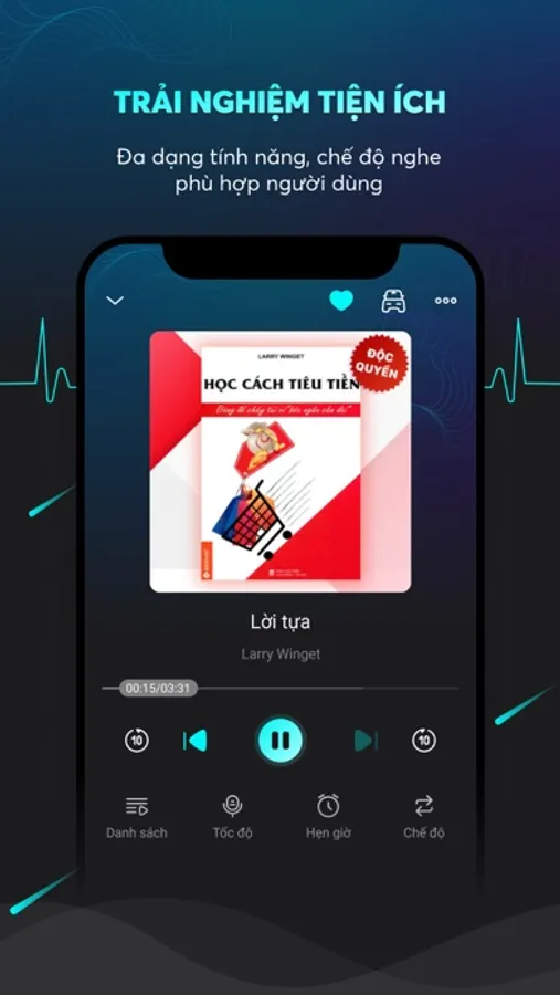 - Tùy chỉnh tốc độ nghe sách theo ý muốn, tua nhanh chậm