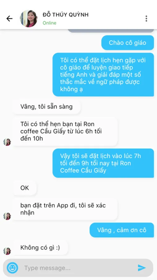 Ứng dụng tuyệt vời giúp người học Tiếng Anh có thể đặt lịch hẹn gặp với các giáo viên Tiếng Anh tại các quán Coffee của RON.