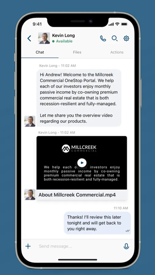 We take the benefits of investing in commercial real estate to the next level. We can help you enjoy monthly passive income by co-owning premium commercial real estate that is both recession-resilient and fully-managed. Manage your assets, review available properties, and expand your portfolio using the Millcreek Commercial app.
