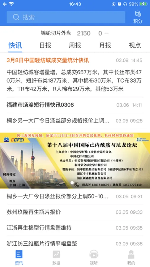 中纤资讯——一个深耕于化纤领域,提供及时、准确的一手行业新闻、热点评述、市场追踪以及提供包括价格在内各类产业运营数据的专业性平台;为广大化纤化工行业客户、金融投资领域客户,提供包括石化产品、聚酯产业链(包括PX、PTA、MEG、涤纶短纤、聚酯瓶片等)、尼龙产业链、再生聚酯产业链、粘胶产业链、腈纶产业链及氨纶产业链的上下游资讯。
